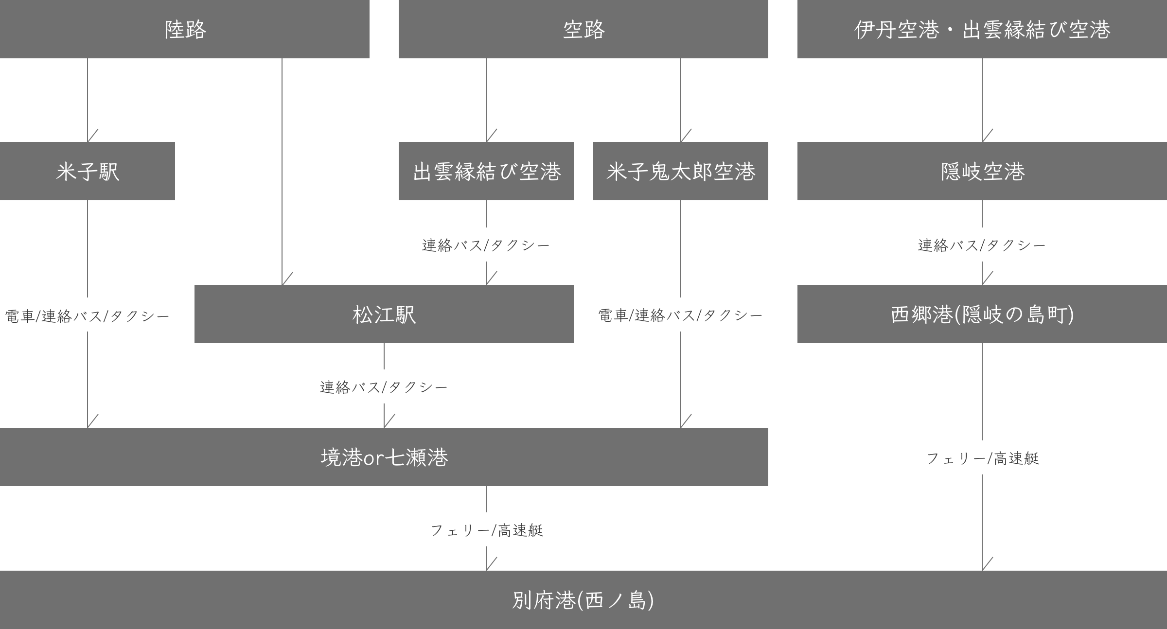 主なアクセス方法は七類(島根県)・境港(鳥取県)からフェリーで約2時間20分。 又は高速船で約1時間10分。